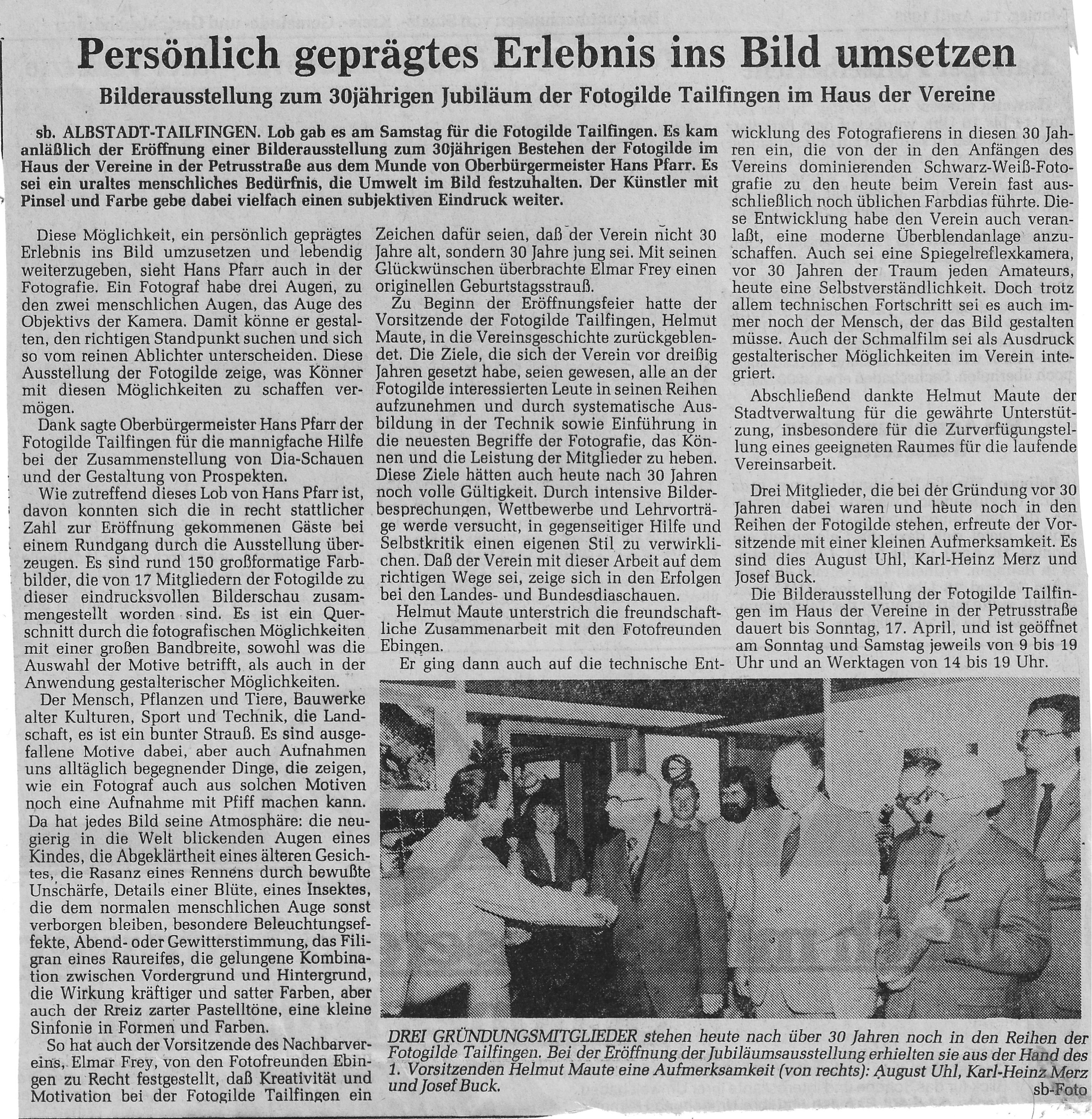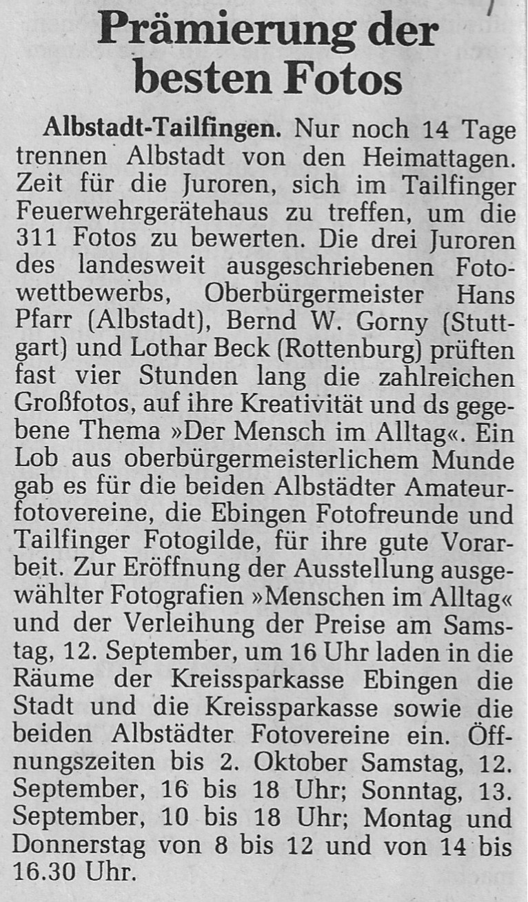 Hier können Sie lesen was die Presse über die Fotogilde Tailfingen e.V. berichtet. | Zur Presse Übersichtsseite